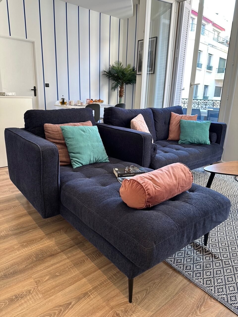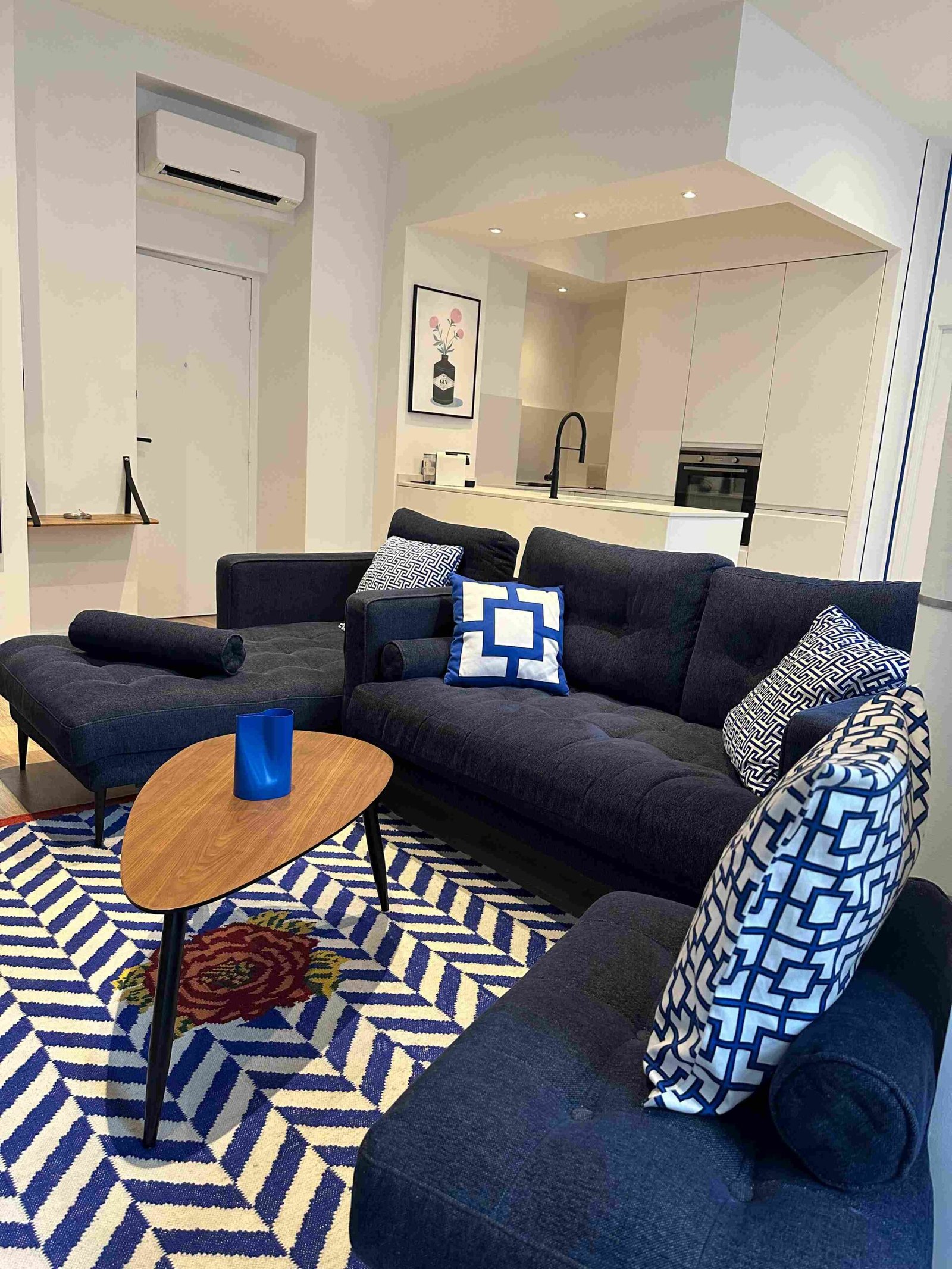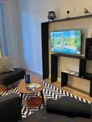 Poussez la porte et laissez-vous emporter par l’ambiance méditerranéenne. L’appartement baigné de soleil est un mélange de confort contemporain et de couleurs apaisantes, comme le bleu Matisse et le blanc. La pièce de vie s’ouvre sur une terrasse avec un salon de jardin, idéale pour profiter d’un café au soleil. Chaque détail a été choisi pour créer un espace à la fois élégant et chaleureux, où vous vous sentirez comme chez vous.